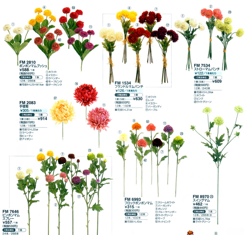 造花、菊・マムなどのご注文は必要項目にご記入の上、FAX お電話 Eメールでお申し込みください。