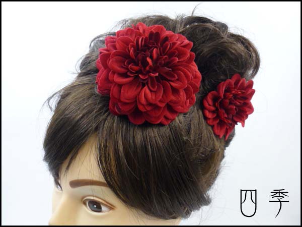|   | 四季 > コサージュ > カノン*コサージュ*髪飾り*2点*ベルベット*ダリア*赤* |   |