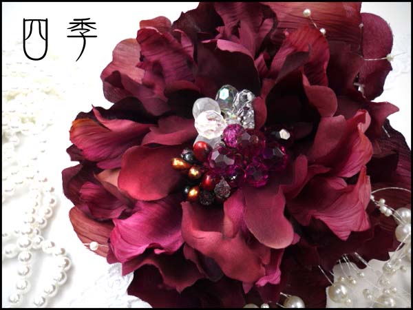 |   | 四季 > コサージュ > アンリ*ダリア*セザンヌワイン*コサージュ*髪飾り*帯飾り*ビーズ♪ |   |