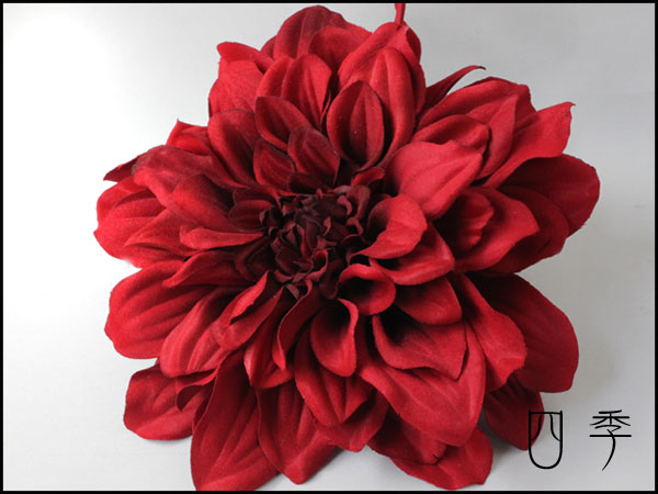 ダリア*シャイニー*コサージュ*ヘッドドレス*赤*レッド●金額 売切れ中止●サイズ ・ 花径 16cm(Wクリップピン付き) ●商品説明 ・上質なアートフラワーを使ったコサージュ・ヘッドドレスを一つ一つ心をこめてお作りしています。 ・サテン特有の光沢を抑えた、ダリアのコサージュ、ヘッドドレスです。燃えるような赤の影に深い陰影を湛えたシックな花髪飾り、コサージュでございます。 ・ Wクリップピン(台付き金具にネクタイピンのように挟むクリップとコサージュ用安全ピン付)がついていますので髪飾り・コサージュ・帯飾りにお使いいただけます ・ Uピン・ヘアクリップ・ヘアゴムへの変更の加工も無料で承ります ・ 箱(無料)に入れてお届けいたします。 ●支払い方法 ・ ゆうちょ銀行 (ぱるる) ・ イーバンク銀行 ・ ジャパンネット銀行 ・ 代金引換:商品代+送料+代引手数料 ●発送方法 ■郵便 ・(定形外)全国一律240円(不着や破損の保証はありません・郵便番号をお願いします) ・郵便扱いですので代金引換はできません・しっかりした箱(無料)でお届けいたします。 ■佐川急便(不着や破損の保証がついています)